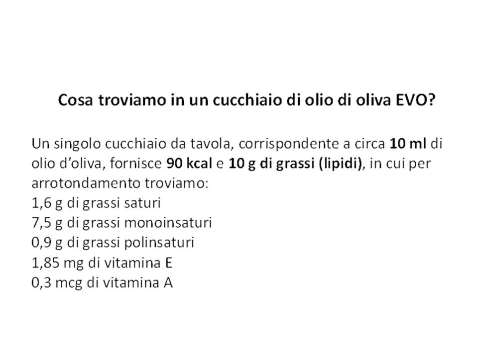 -Monoinsaturi: il più diffuso è l’acido oleico, principale componente dell’olio d’oliva.